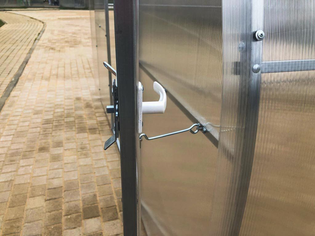 Zasklení skleníku je tvořeno čirým dutinkovým (komůrkovým) polykarbonátem o tloušťce 6 mm s UV ochranou, která zamezuje křehnutí materiálu a změně barvy. Polykarbonát je samozřejmě certifikovaný a splňuje veškeré podmínky zdravotní nezávadnosti.